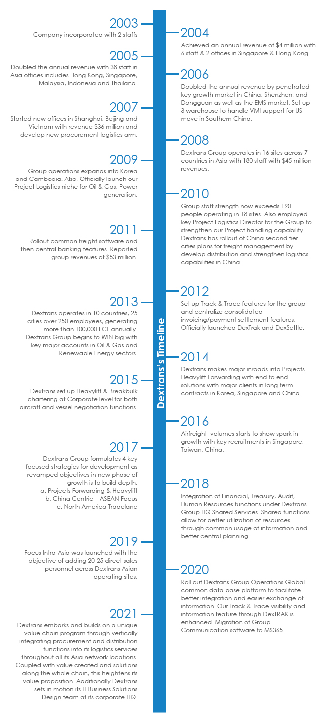 “Dextrans Worldwide Group has been on a WINNING streak for the past 10 years. For that we want to celebrate success by thanking our stakeholders especially our dedicated and committed employees. We are proud and glad to reach this milestone which has seen us through many challenging yet fulfilling experiences. It has been an eventful 10 years. During this time, Dextrans has grown to 10 countries with 25 fully owned offices and 250 employees in Asia.