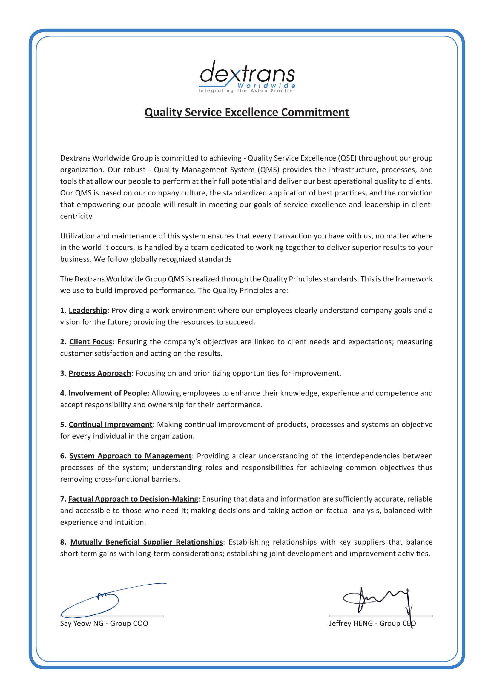 MESSAGE BY “JEFFREY HENG – CEO, DEXTRANS WORLDWIDE GROUP”