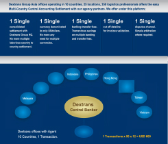A state of the art accounting and financial netting systems that auto calculates the position of every individual itemized accounting payable and receivable of vendors, agents and customers on real time basis. Information provided in dexSETTLE allows accounting settlements to be concise into a single amount with all companies so as to minimize banking transactional cost. It is an efficient and effective method to better allow control and manage internals funds utilization, financial risk exposure and increase business volumes with our business partners. Reasonable usage of this cutting edge module ensures that financial management becomes a revenue generator instead of merely a cost component.